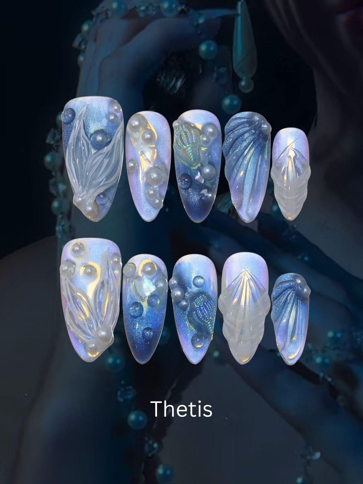 Immerse yourself in the enchanting beauty of MituArt' Song of Mermaids. This exquisite collection of press-on nails is a tribute to the ocean's ethereal allure, featuring shimmering pearls, graceful mermaid motifs, and intricate 3D water wave patterns. Each design captures the poetic melody of the sea, weaving a tale of underwater wonders at your fingertips. Perfect for those who revel in the elegance of marine life, the Song of Mermaids offers a sophisticated and effortless way to embrace the ocean's charm. Let your nails sing the enchanting song of the sea and transform your look with a touch of aquatic magic.