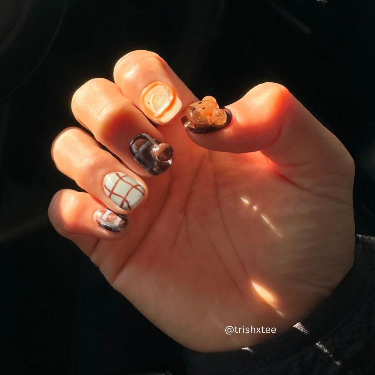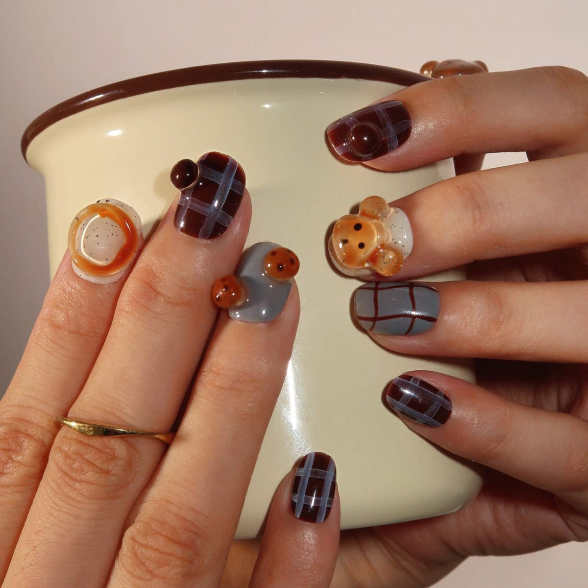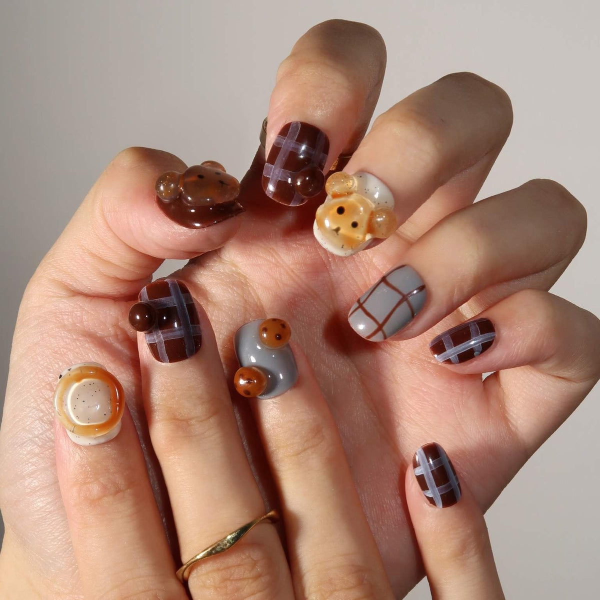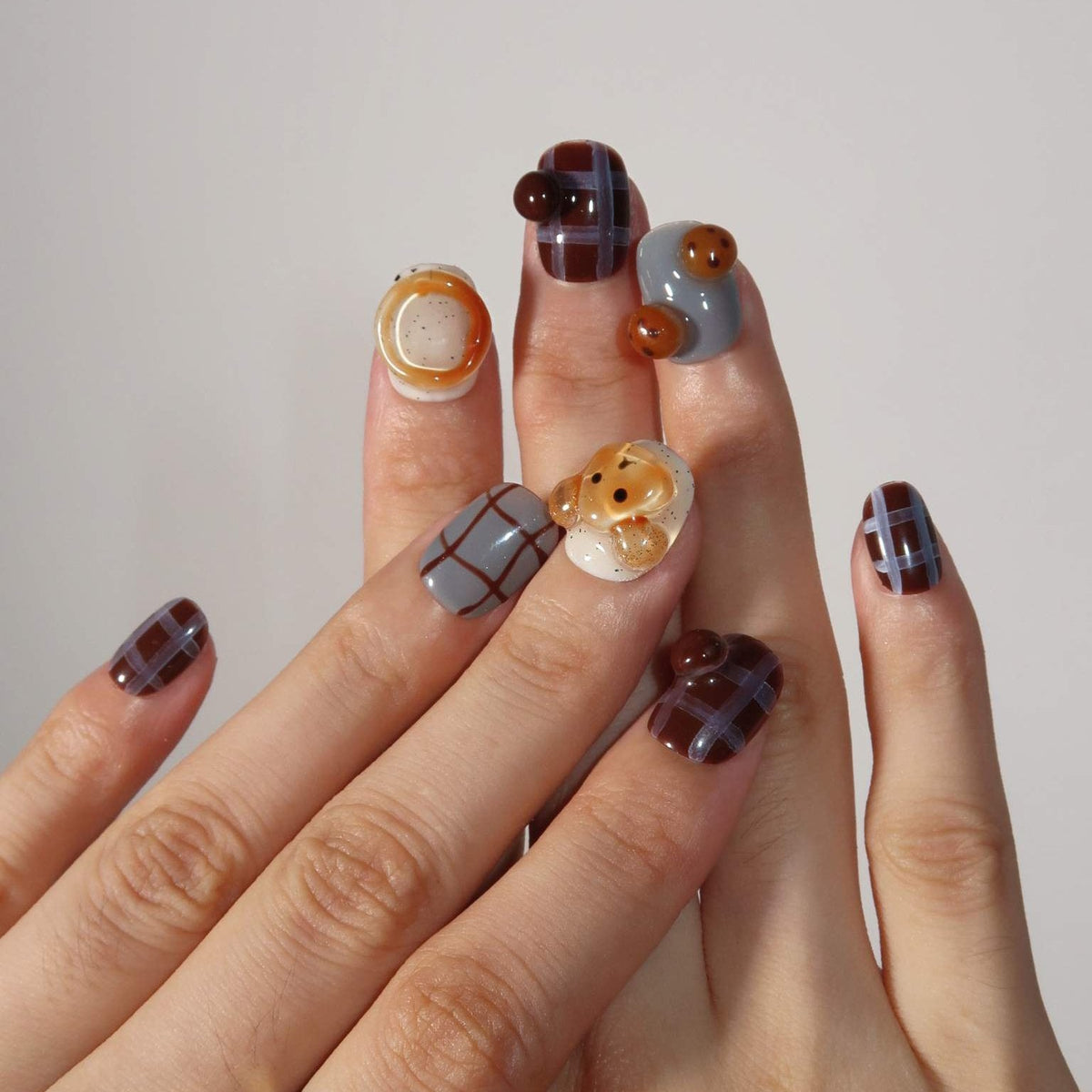 Teddy Bear brings a playful yet cozy vibe to your manicure. With a soft brown color palette as the foundation, this set is adorned with charming 3D teddy bear accents for a cute, nostalgic touch. The irregular plaid line design adds a modern twist, blending cuteness with contemporary style. Perfect for those who love an adorable yet chic look that’s both fun and fashion-forward.