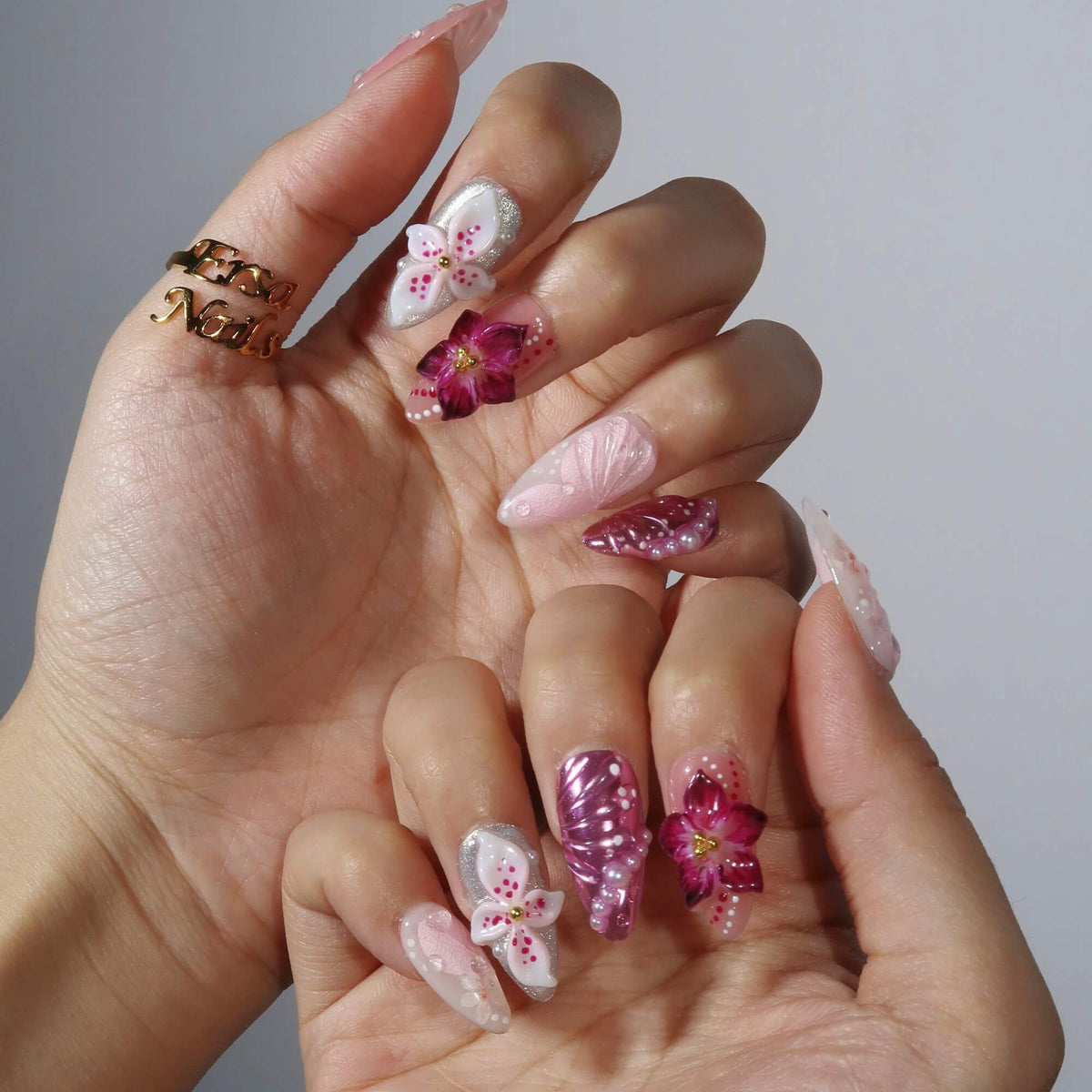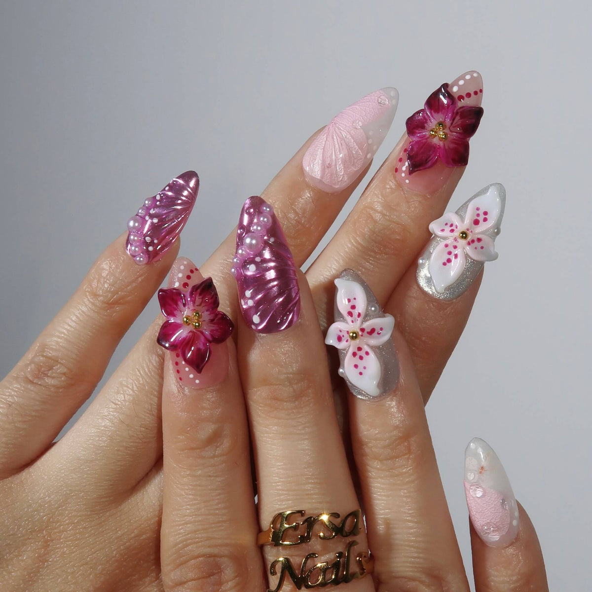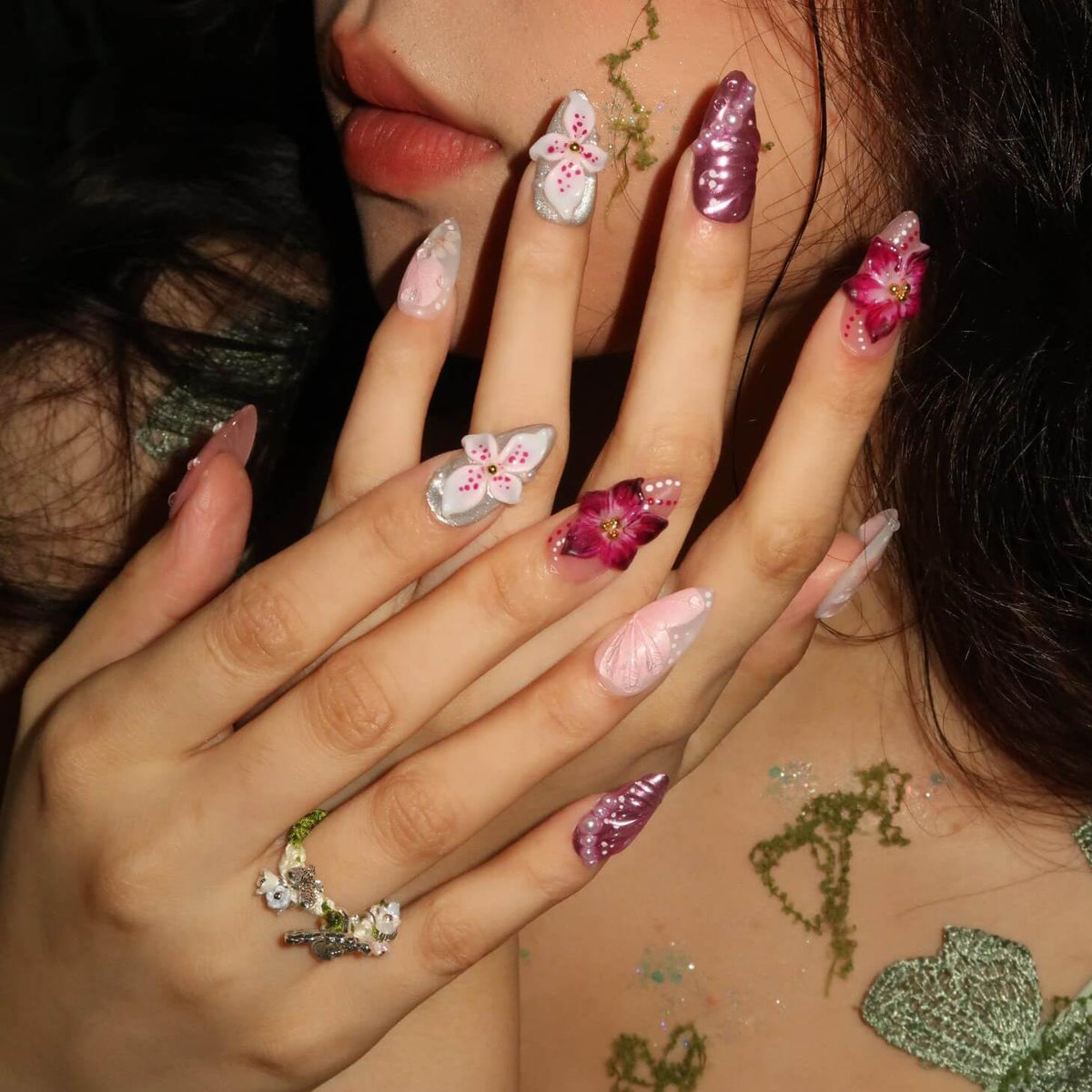 Wildest Dreams from MituArt is a breathtaking press-on nails set that exudes elegance and whimsy. Featuring a soft blend of pink and lavender tones, this set is beautifully adorned with intricate floral designs, including 3D flowers that create a stunning, textured effect. Pearl and crystal accents add a touch of glamour, while delicate detailing gives it a dreamlike, ethereal quality. Perfect for those who want to embrace femininity and sophistication, Wildest Dreams brings a romantic and luxurious vibe to your nails, making it an ideal choice for any special occasion.