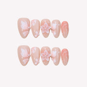 Step into a world of elegance with Petal Dance press-on nails from MituArt. Featuring a nude base with soft pink ombré design, these nails are adorned with 3D flower accents and delicate petal patterns. The perfect blend of grace and femininity, Petal Dance adds a sophisticated touch to your nail art collection, making it ideal for any special occasion or a touch of everyday beauty.